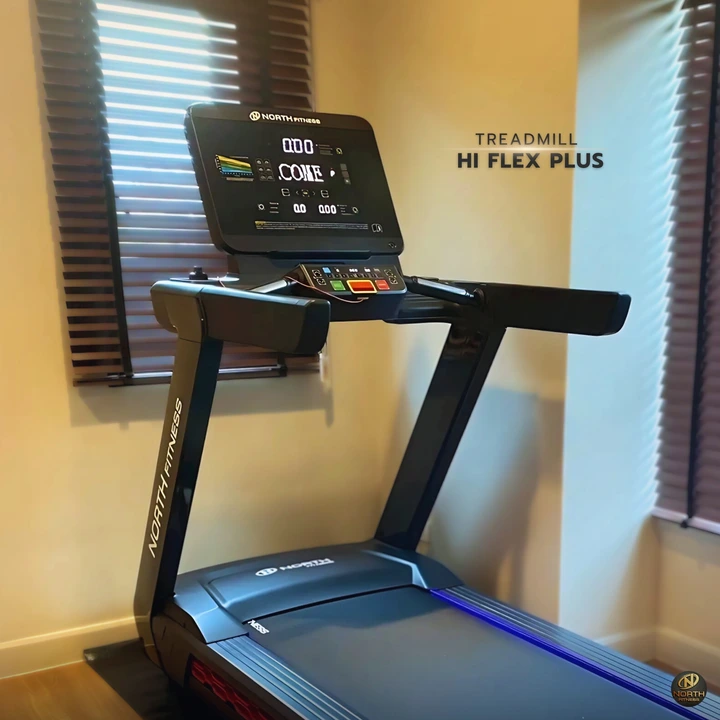 ลู่วิ่งไฟฟ้า North Fitness รุ่น Hi-Flex Plus หน้าจอแสดงผล เวลา, ความเร็ว, ความลาดชัน, ระยะทาง, แคลอรี่, อัตราการเต้นของหัวใจ หน้าจอ มีระบบชาร์ทแบตเตอรี่โทรศัพท์ แบบไร้สายได้ (สำหรับ Smart Phone ที่รองรับWireless charging Mold Optional) วัดชีพจรด้วยระบบแฮนด์เพาส์ และ มีปุ่มหยุดฉุกเฉิน safety key